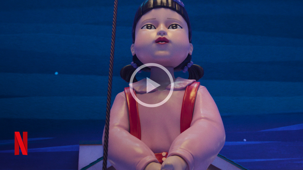 The participants are seen cowering behind the giant Young-hee doll, the deadly giant from the first season’s “Red Light, Green Light” game.